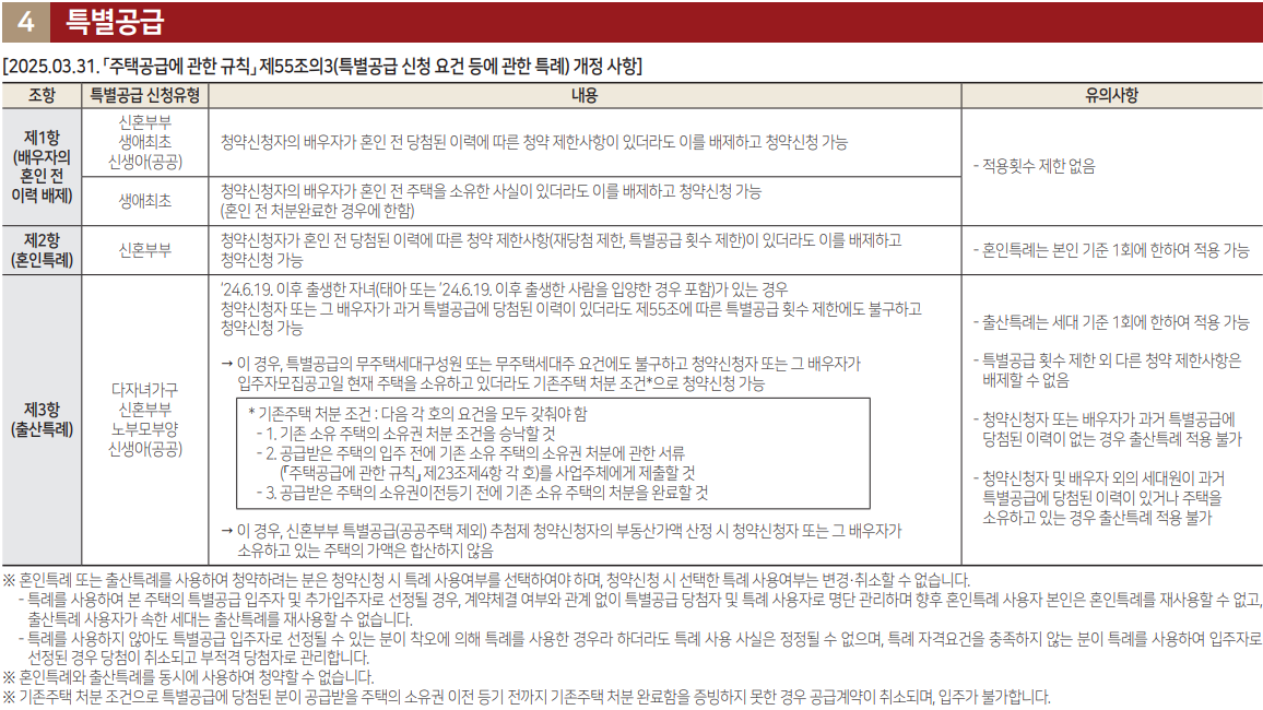 - 특별공급과 일반공급 중복청약 가능 (단, 특별공급 당첨 시 일반공급 당첨 제외)